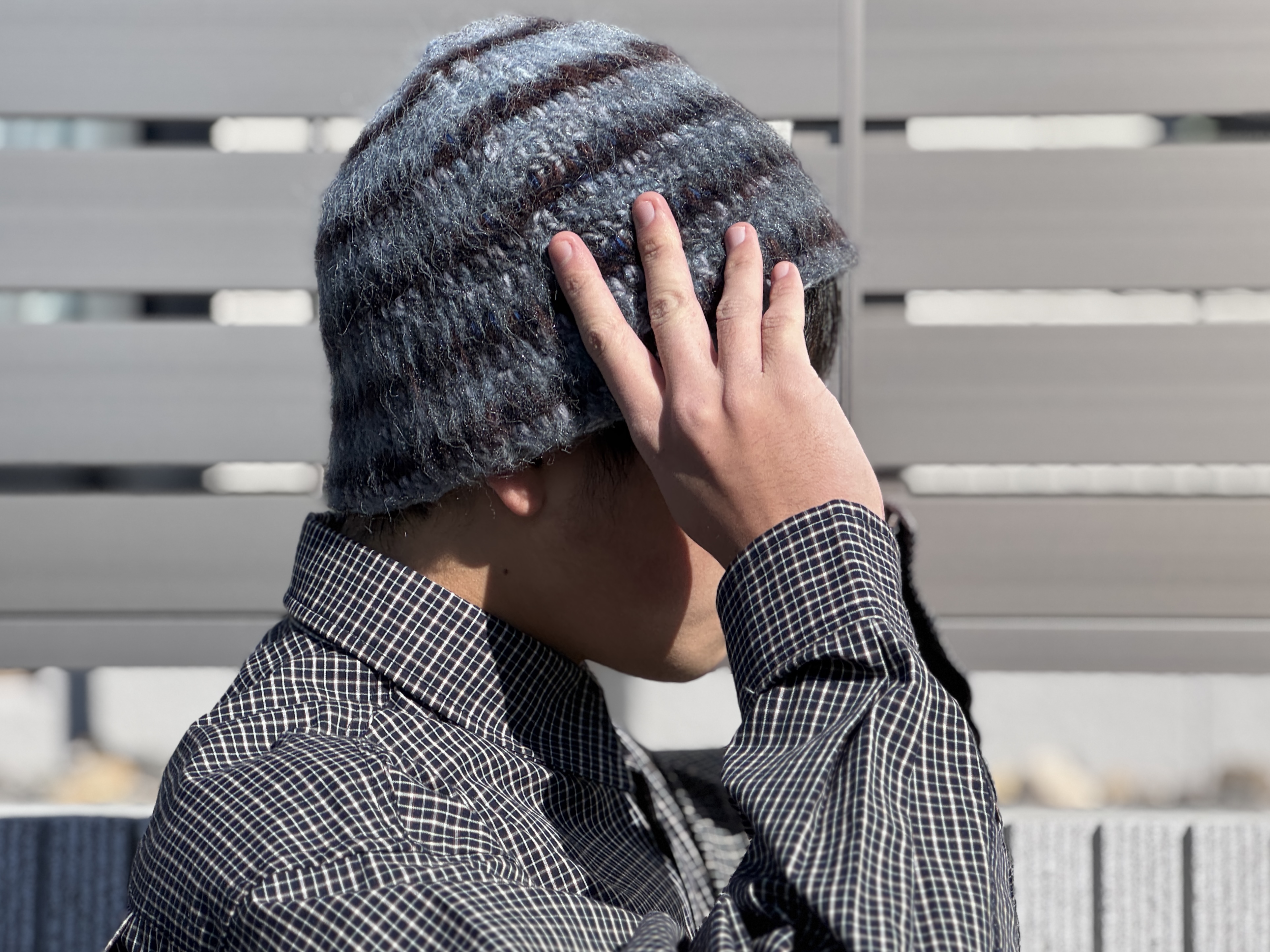 新作はモヘアのような表情に加工されたシングルビーニー。