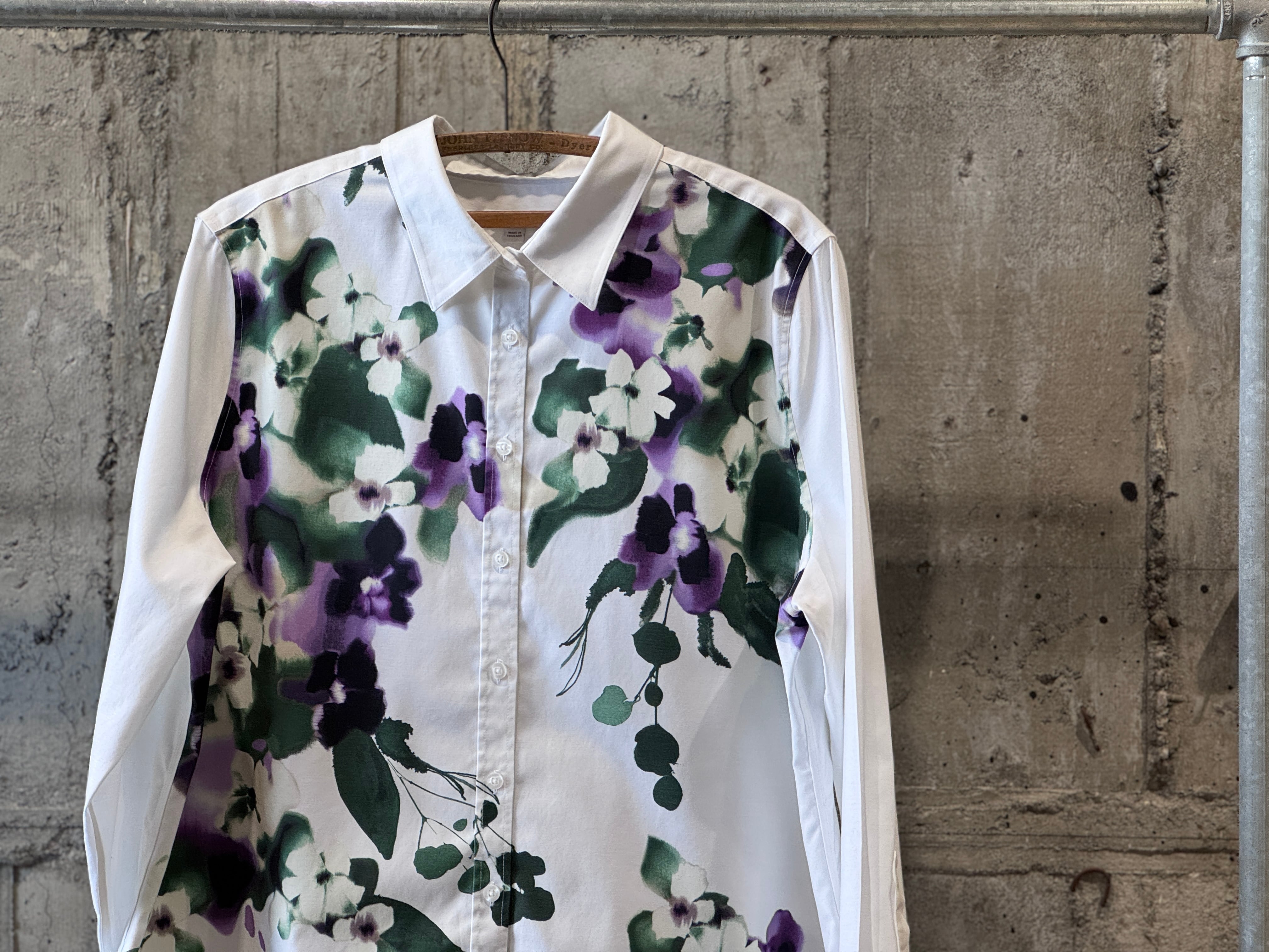 chico’s design pattern shirt 2026.02.15 白シャツはシーズン関係無く人気。 コチラは染み込みプリントのような雰囲気のあるフラワーパターン。 しかもストレッチも効きます! chico’s design pattern shirt SOLD OUTになりました。ありがとうございました。