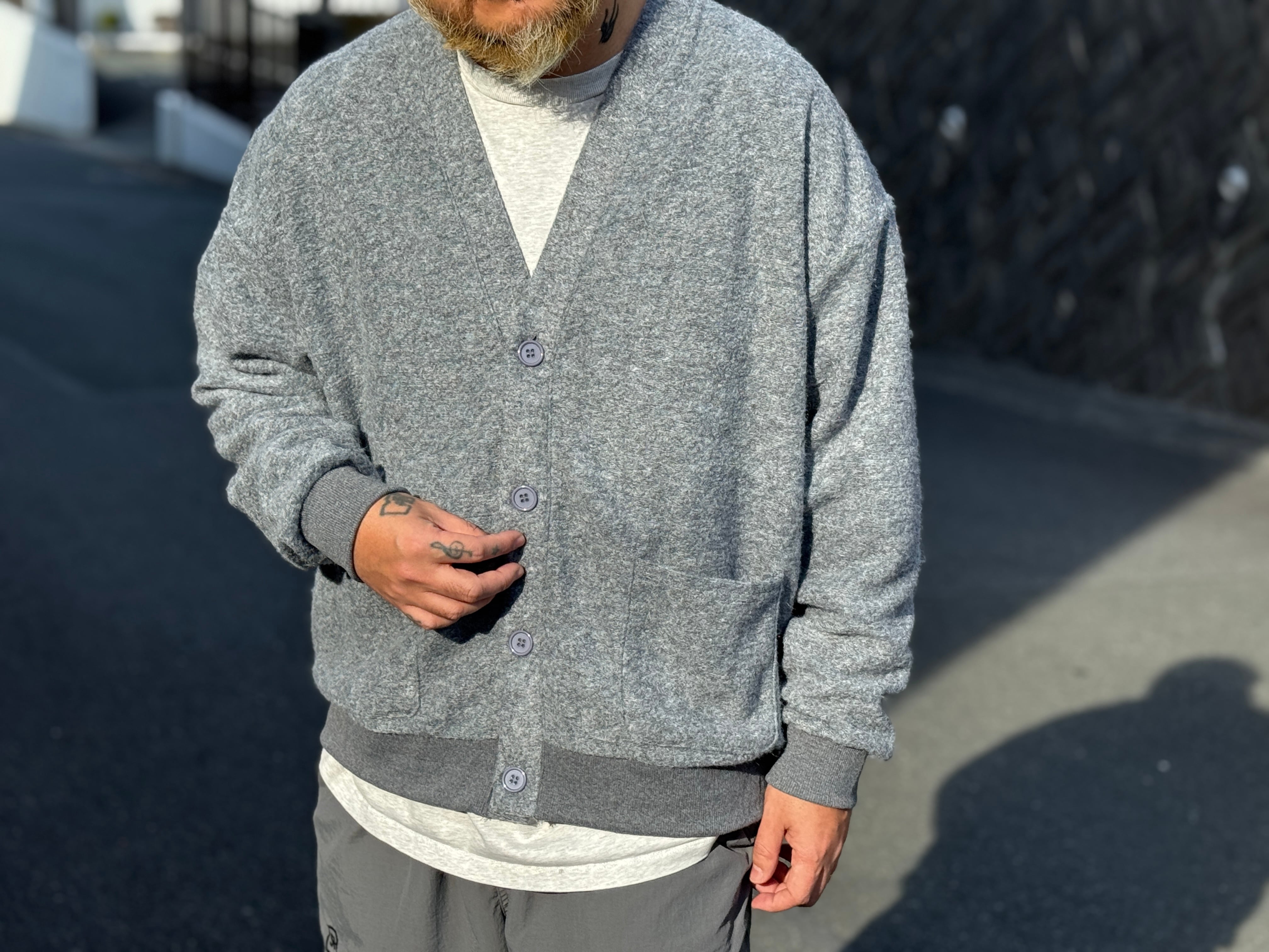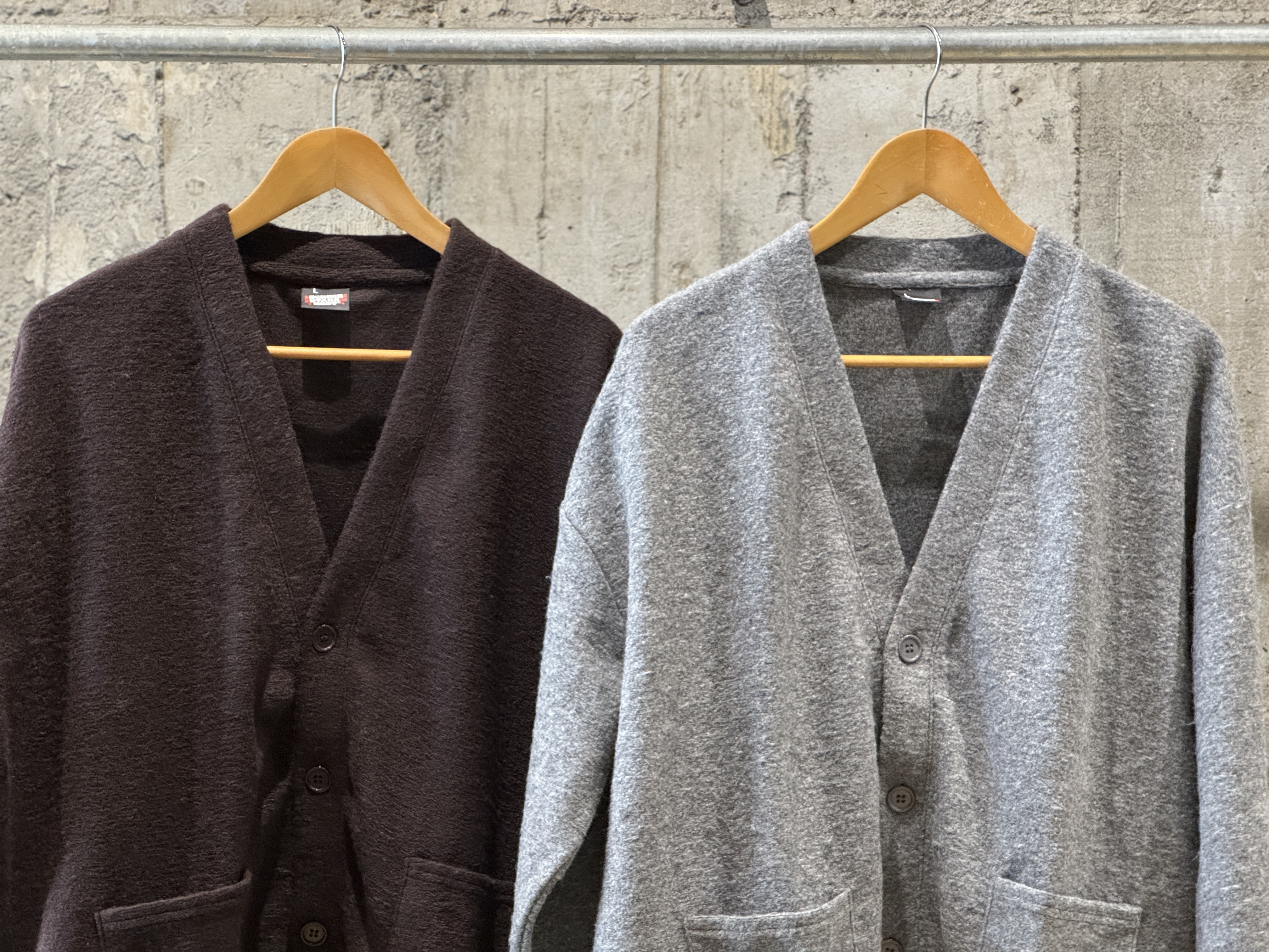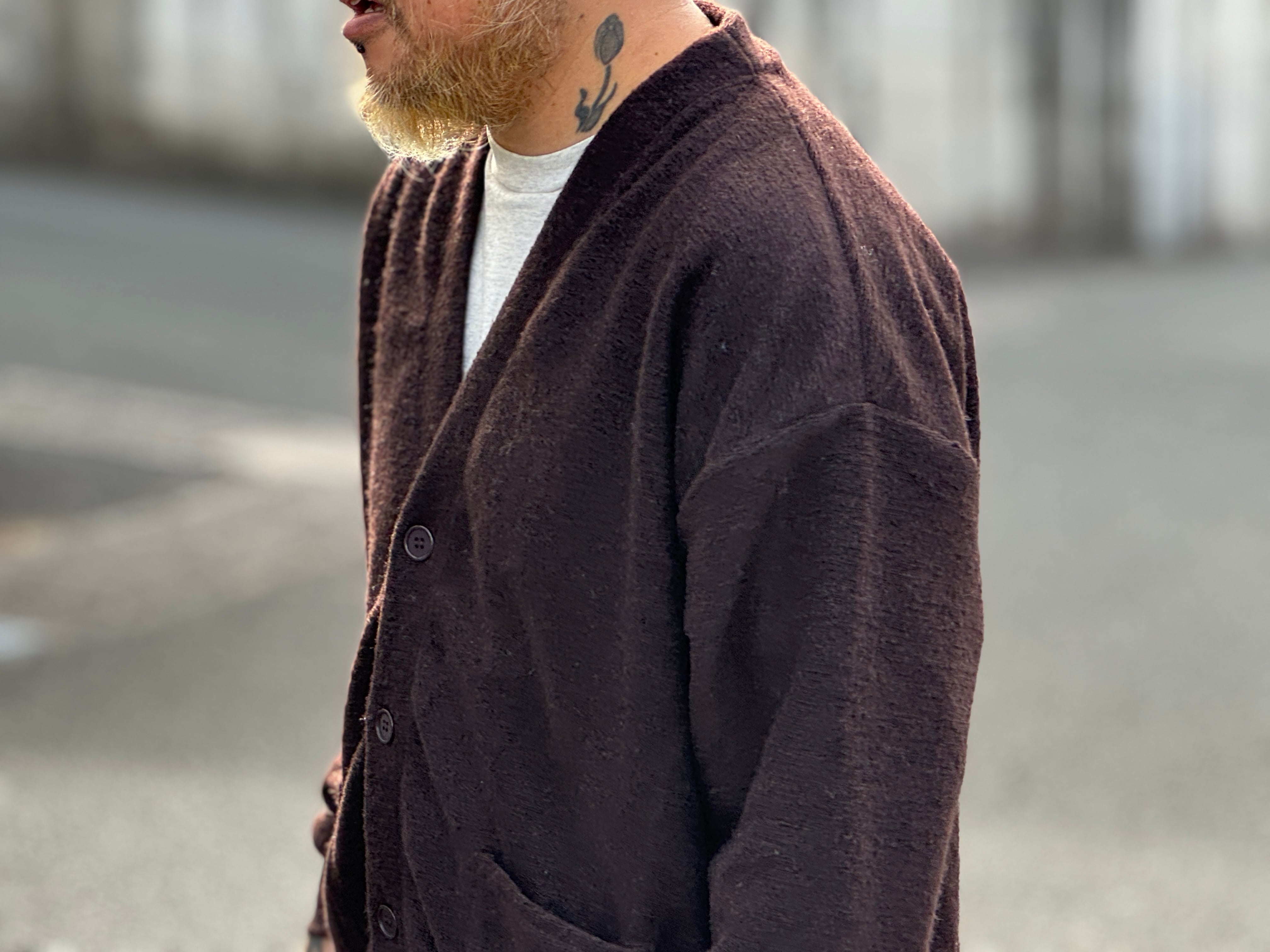 Design knit cardigan 2025.12.12 アウターだけでなく、丁度良いインナーもお探しの方が多いのでセレクトしました。 古着にはない生地感・シルエットに注目なオススメなカーディガンです。 モヘアタッチな良い表情ですが肌触りが良く、伸縮性があり着心地も抜群。 シルエットは絶妙なボックスシルエット。袖・裾リブも良い。 ミニマルなデザインなので歳を重ね続けても着たくなるitemです。 Design knit cardigan color:Brown color:Gray