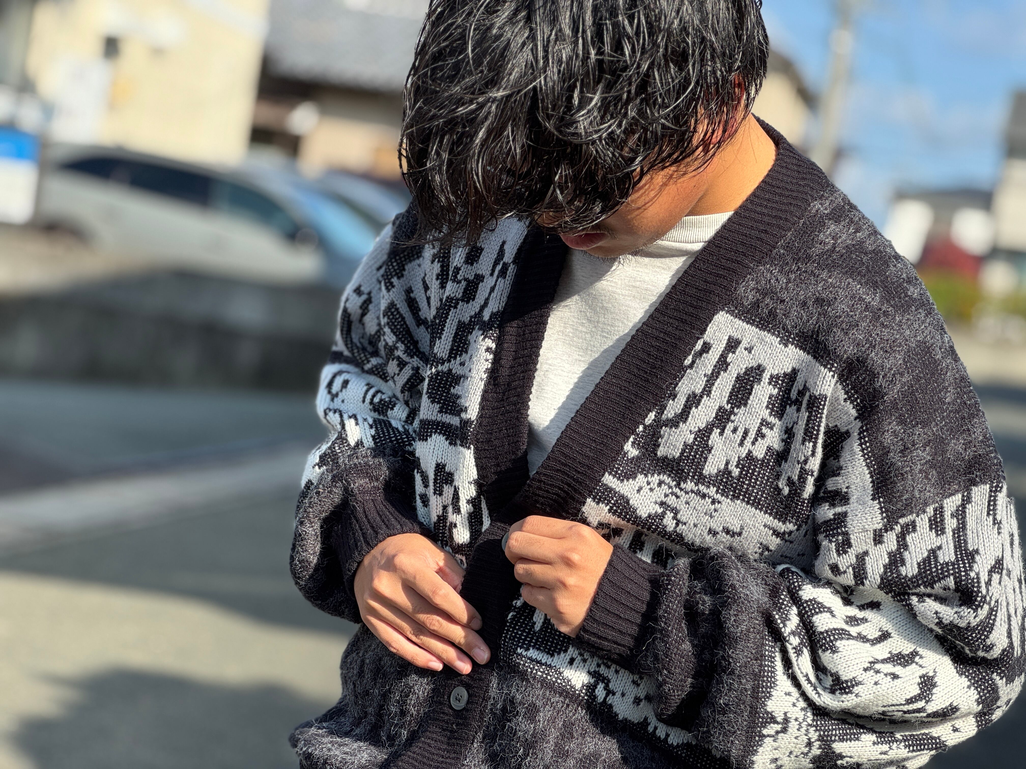 NUOVO design pattern cardigan 2025.11.11 カーディガンもなかなかストックが出来ない人気なitemの1つ。 コチラはパターン切り替えだけでなく生地も合わせて切り替えられチャコール部分のシャギー感がポイント。 ドロップショルダーでふんわりとワイドで身幅、そして程よく短丈なボックスシルエット。最高。 NUOVO design pattern cardigan SOLD OUTになりました。ありがとうございました。