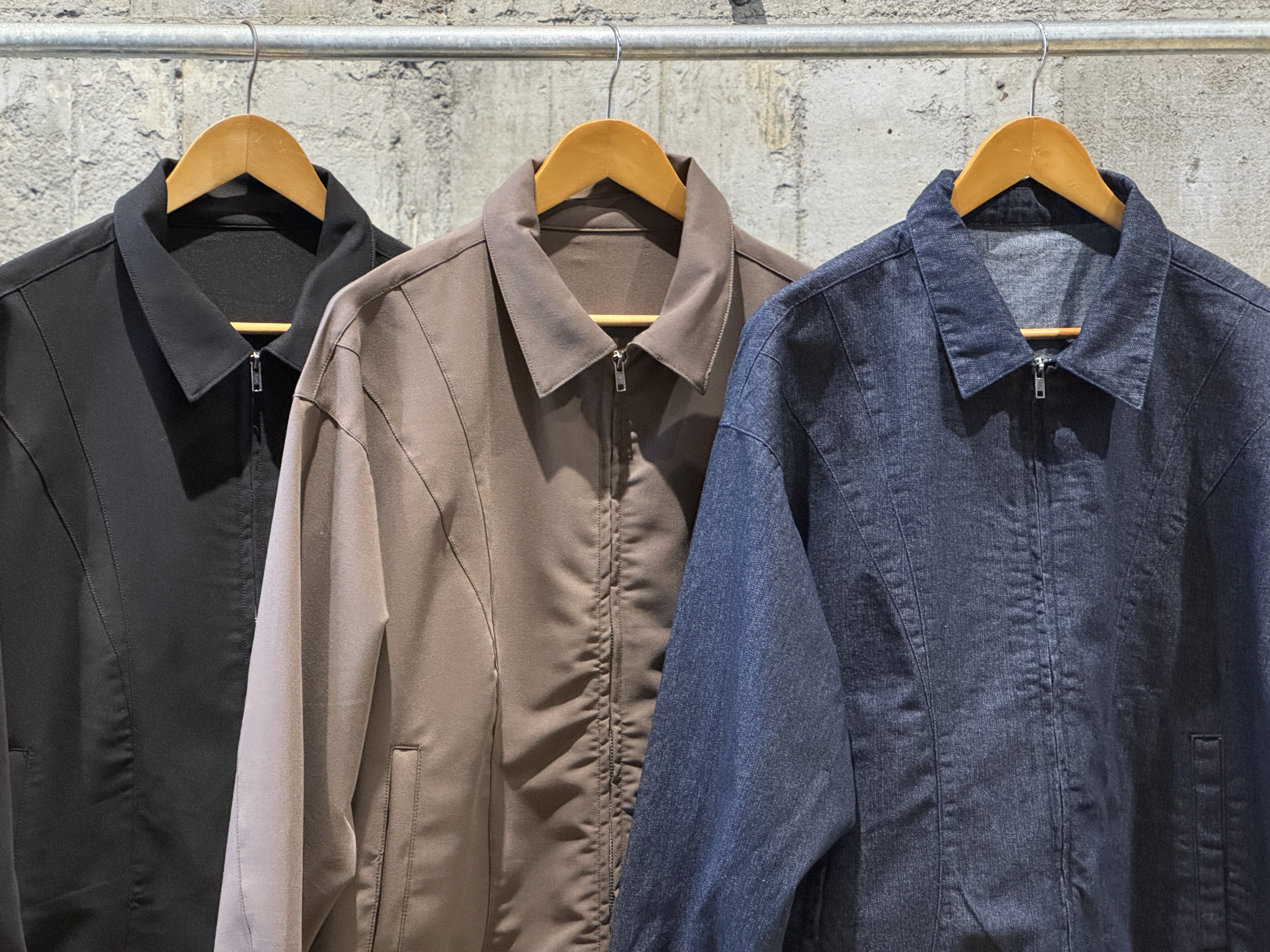前身頃は切り替えのデザイン。程よく短丈、程よくワイドなボックスシルエットでw-zip仕様。