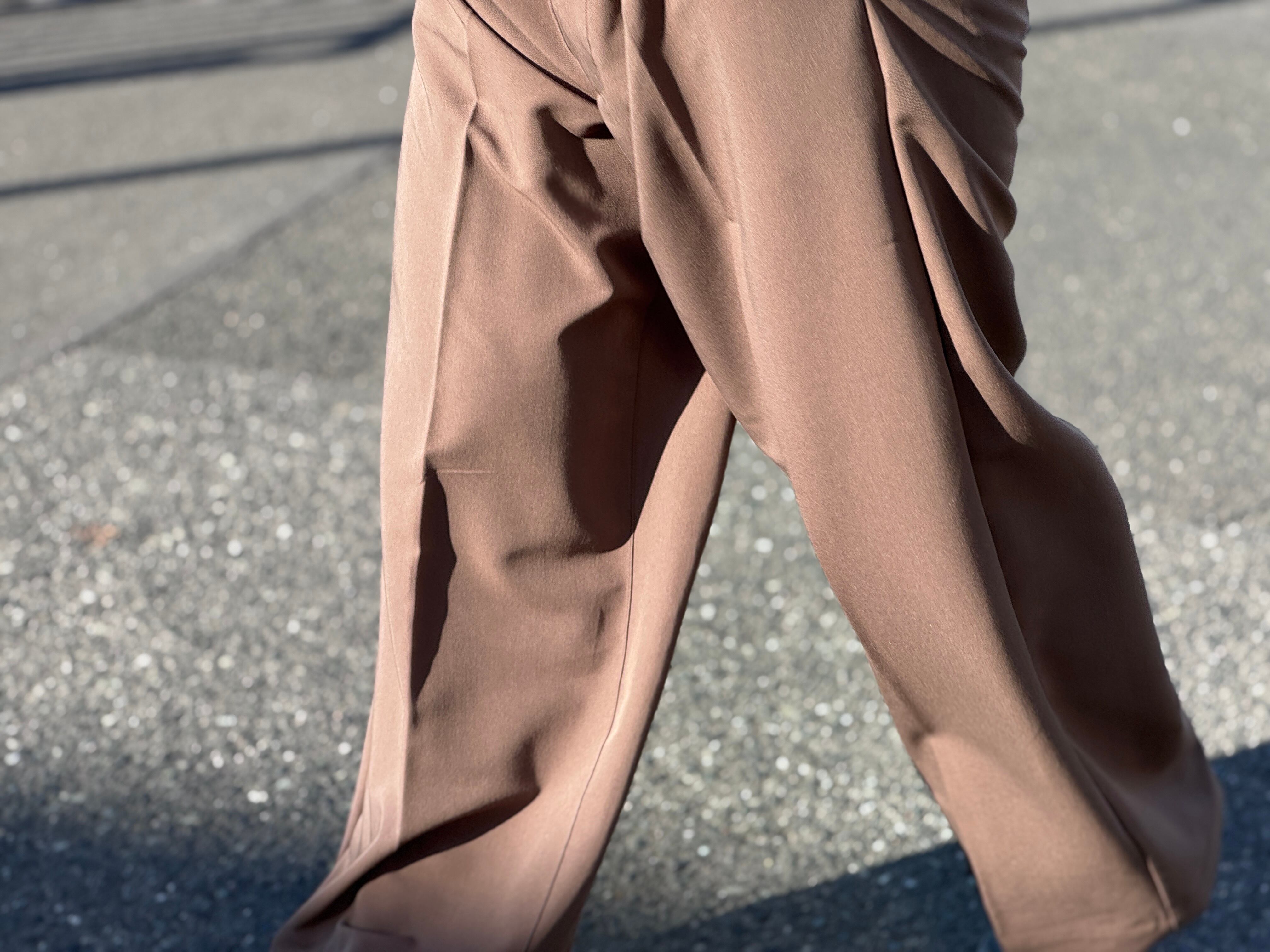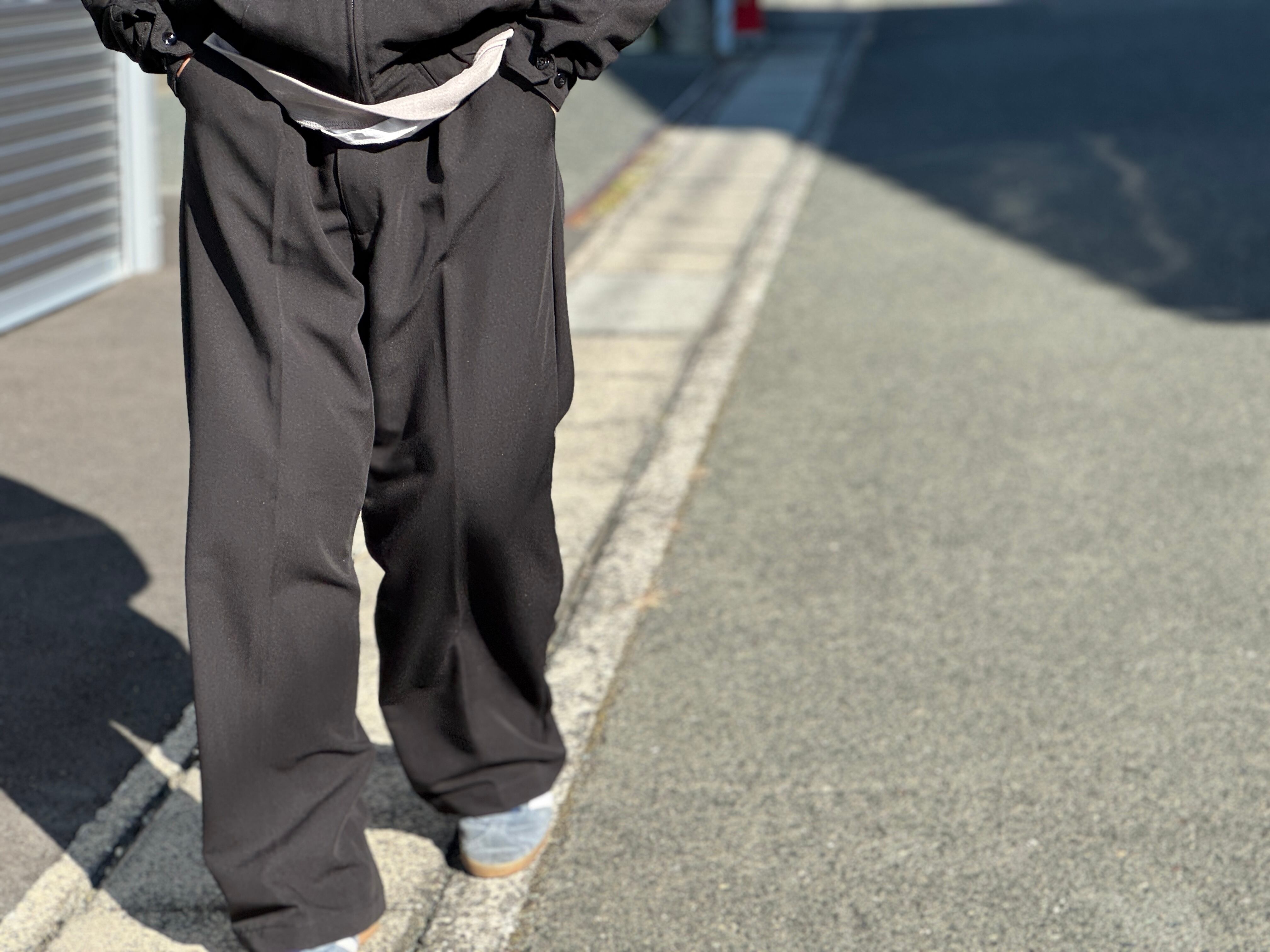 Remake design slacks 2026.01.17 1つ前のblogのsetupが可能なボトムスがコチラ。 同生地で作られた1タックのワイドスラックス。 前開き仕様のイージーパンツ仕様はラフな穿き心地。 Tシャツやスウェットなんかのスタイリングでもカジュアル過ぎず、足元もスニーカーからレザーシューズ、夏はサンダルでもマッチしますね。 Remake design slacks color:Indigo color:Brown color:Black