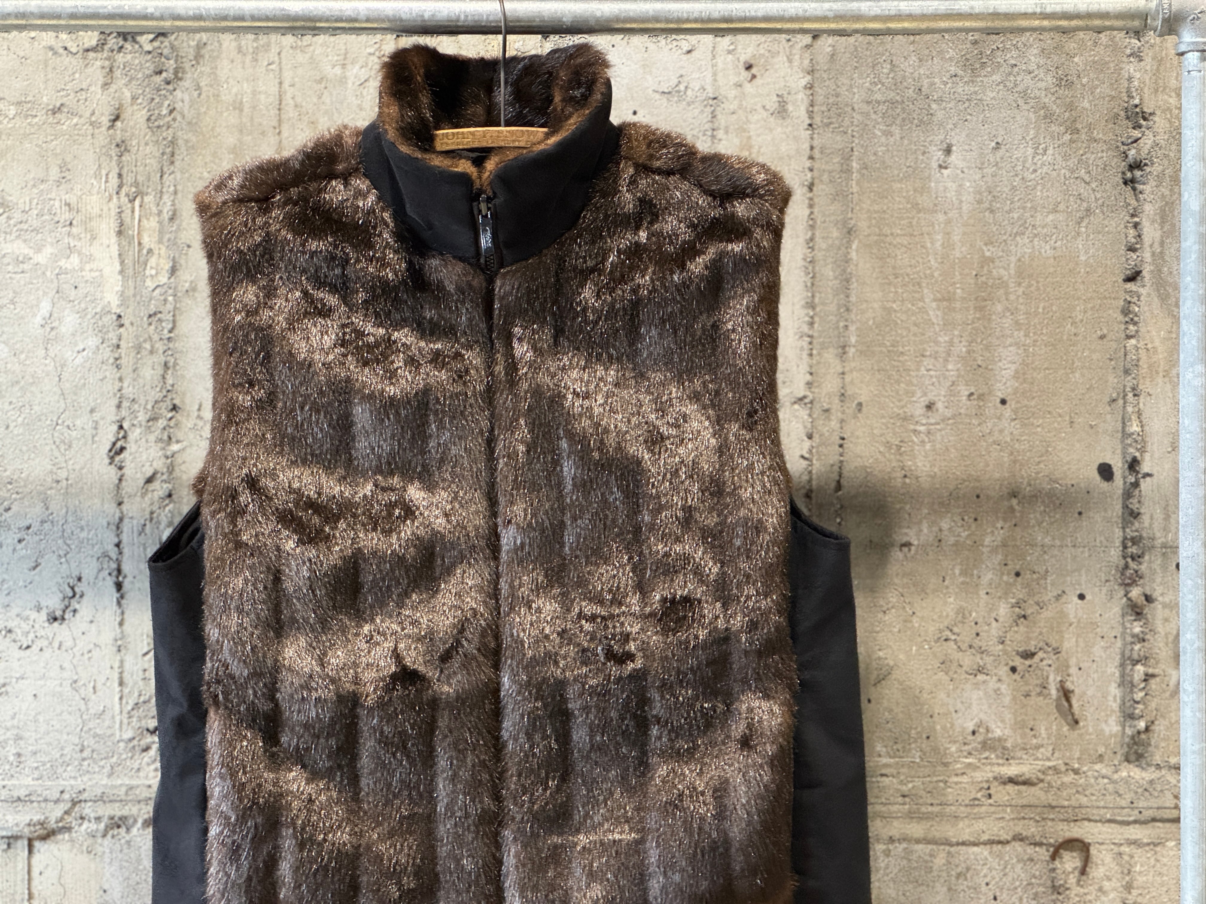 roche reversible fur vest 2025.12.23 2倍楽しめるリバーシブルのベストがアメリカより入荷しています。 今のトレンドマテリアルでもあるファー(コチラはフェイクです。) サイドの切り替え部分はピーチスキン、裏はサラッとした生地感です。 サイズはジャストなサイズ感なので、オーバーサイズのjktやコートのインナーに着ても良いですね。 roche reversible fur vest
