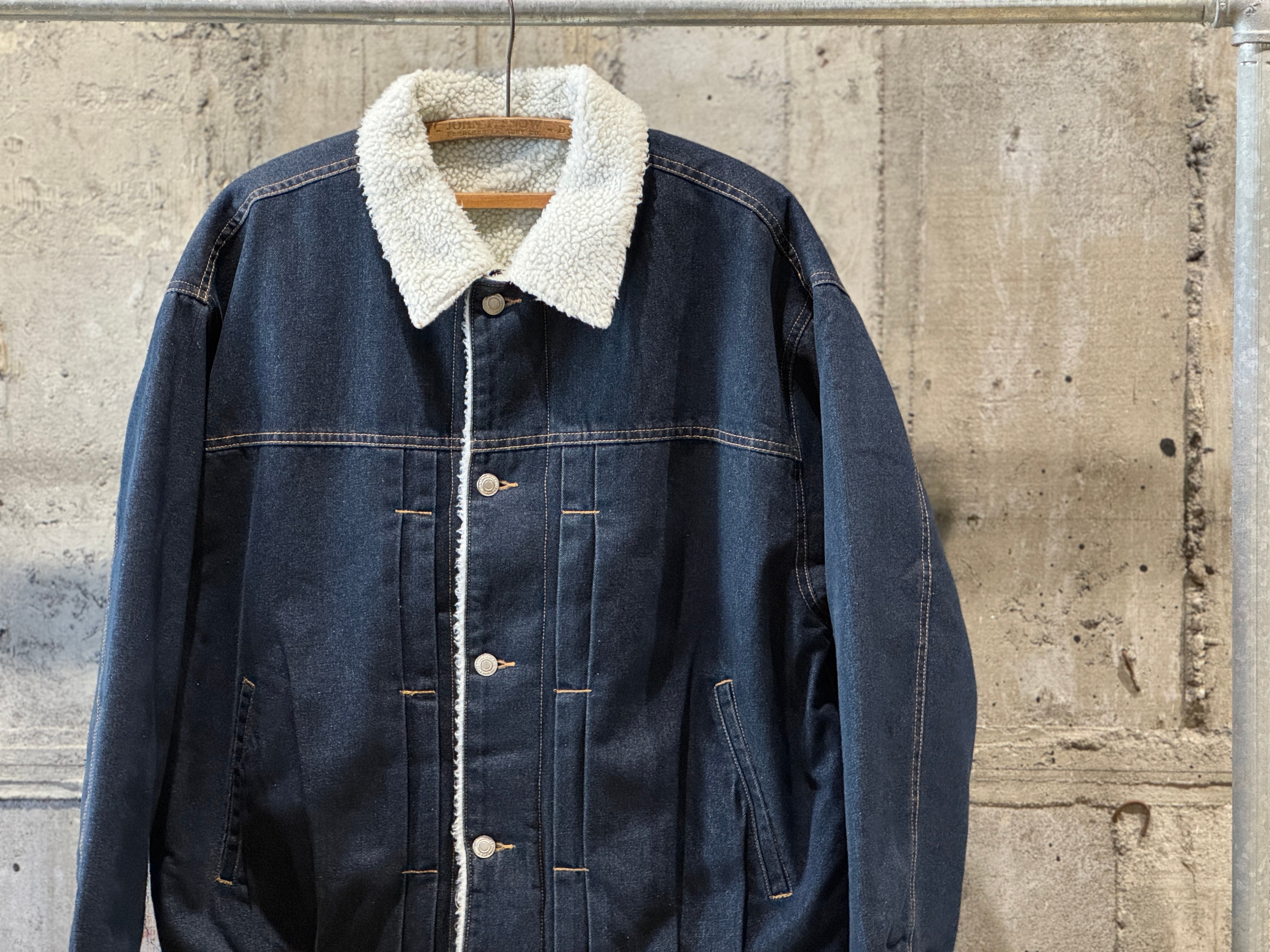 濃いめのインディゴカラー(これ意外と少なく、大体薄めのカラー)、ボタン付近のプリーツや前後身頃裾部分のアクションプリーツ、コチラは袖の内側に薄めの中綿入り。腰部分のバックルでシルエットもお好きのままに!