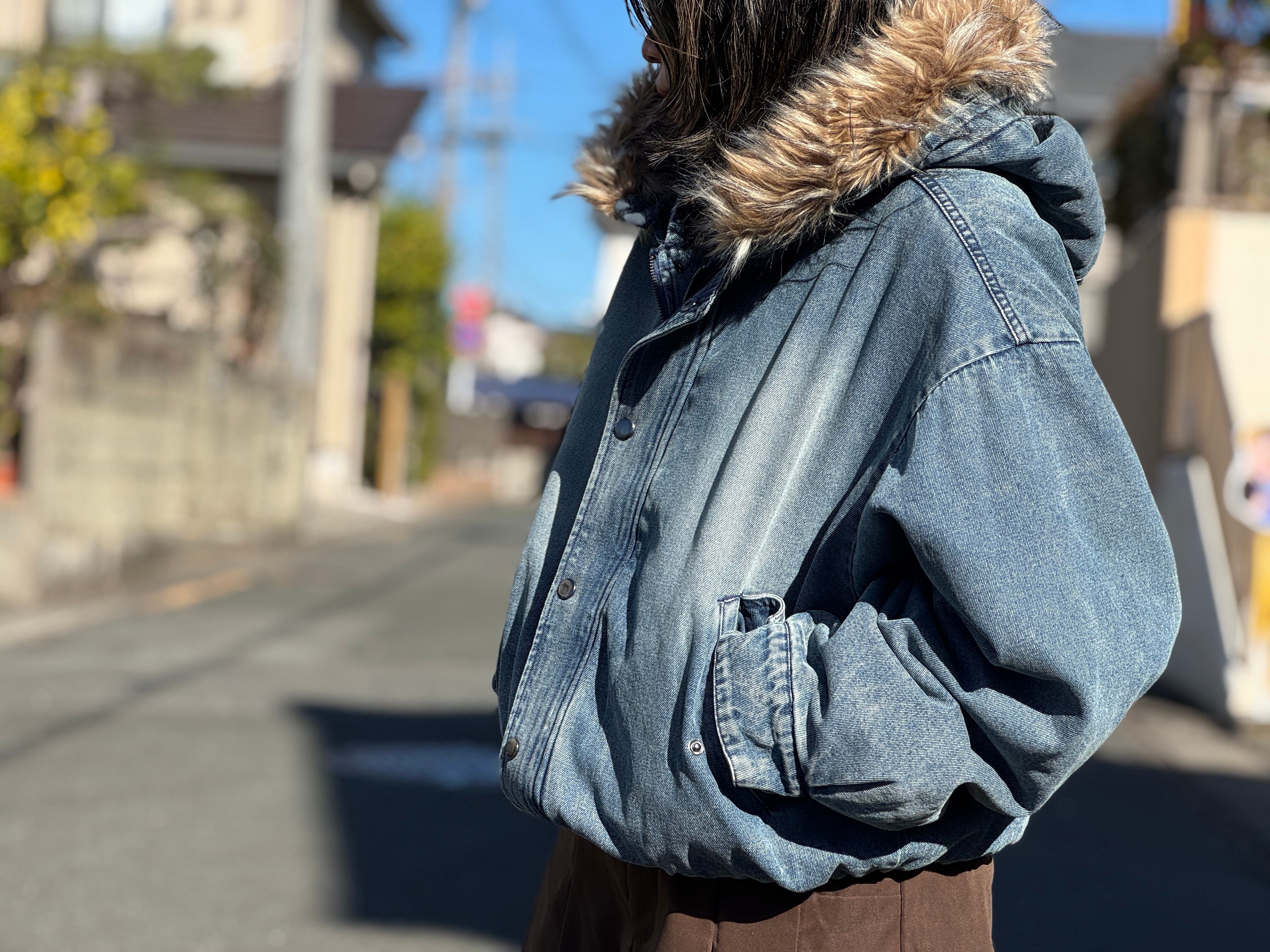 柔らかな肌触りの良いライトオンスのデニム生地を使用したミリタリーライクなデザインのボンバーjkt。